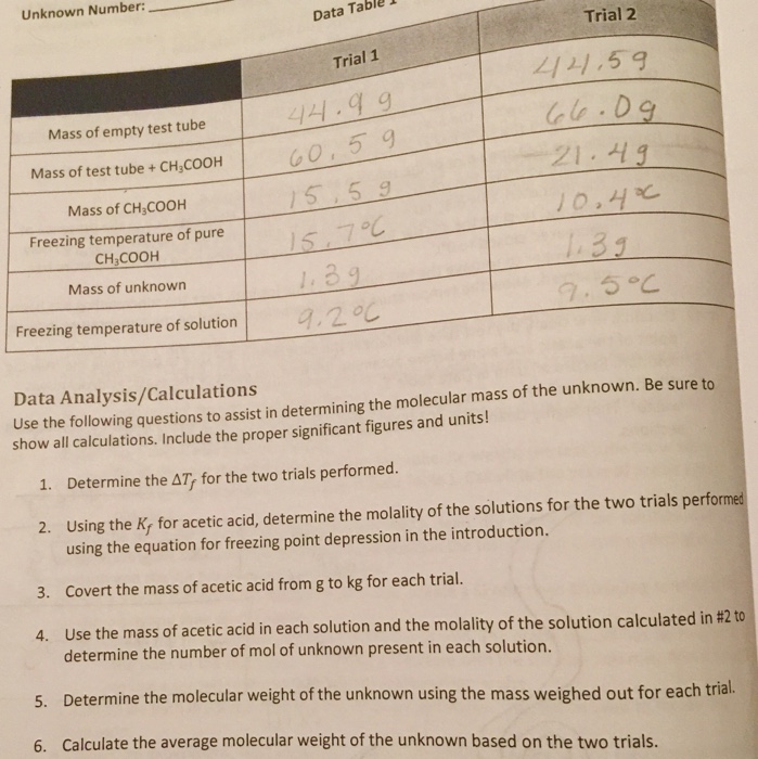 Solved What Is The Correct Delta Tf And How Do I Calculate Chegg Com