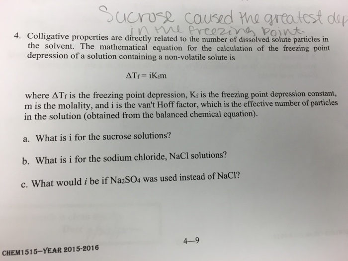 Solved The Freezing Point Depression Is 3 7 Degrees C 1 Chegg Com